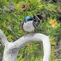 Keywords: tree swallow bird wildlife nature tree branch sitting looking beak outdoors close up