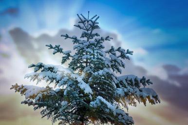 Keywords: tree tree top conifer winter snow snowy sky lighting