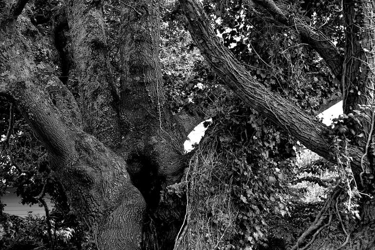 Keywords: tree tree trunk branches nature wood bark trunk forest black and white undergrowth