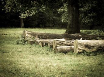 Keywords: tree trunks trees stacked forest forestry timber industry strains meadow grass rush