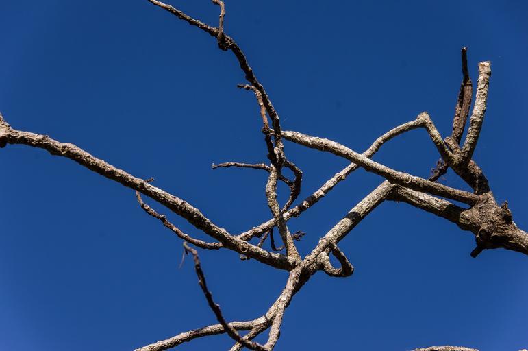 Keywords: tree twigs branch dead grey pattern sky blue abstract