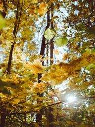 Keywords: trees autumn fall forest woods outdoors nature orange branches leaves sunlight foliage environment