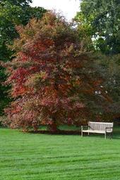Keywords: trees autumn park red leaves foliage leafy gardens greenery lawns benches white woods woody plants flora gardening nature natural environments fall seasons