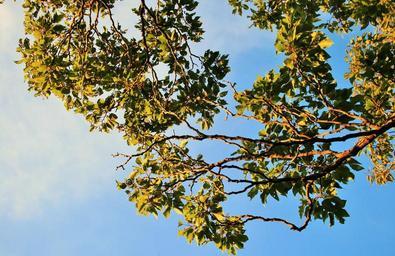 Keywords: trees branches leaves greenery foliage stems plants blue sky bright sunny natural growing growth nature outdoors gardens parks