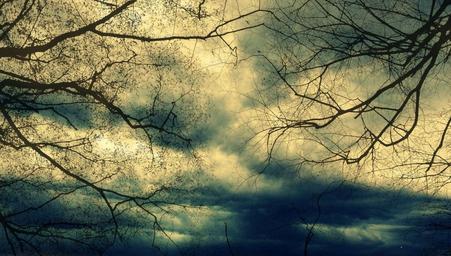 Keywords: trees clouds storm dark mystical sky nature environment spooky yellow light