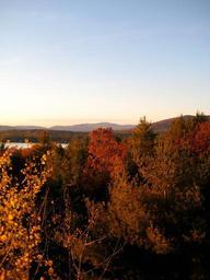 Keywords: trees forest view autumn fall season colorful foliage leaves nature mountains hills lake landscape sunny scenic ecology