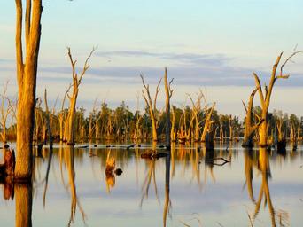 Keywords: trees lake reflections sunrise sunset morning sunlight landscape nature scene color yellow bright natural