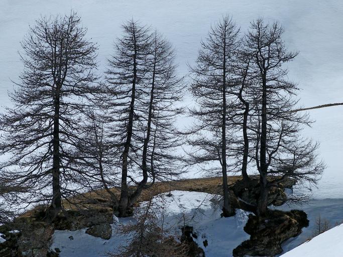 Keywords: trees landscapes nature larch mountain alps contrast snow