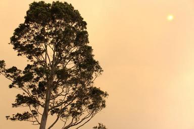Keywords: trees orange sky evening dusk branches leaves greenery leafy flora scenic scenery sunlight bright glowing sun star