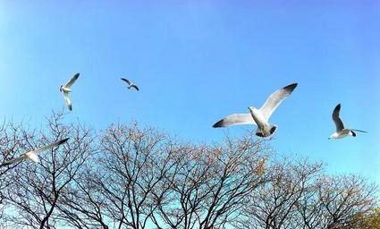 Keywords: trees park sky blue sky nature birds doves