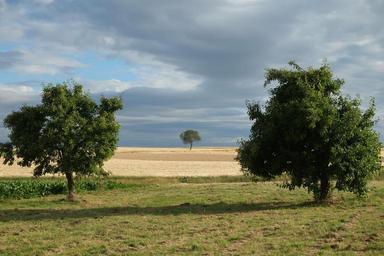 Keywords: trees summer nature landscape field seasons clouds arable cereals sky panorama agriculture wide cornfield fruit trees mood harvest food spike scenic healthy august midsummer bauer grain