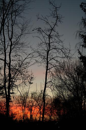Keywords: trees tree trunks sunset afterglow evening sky clouds sky abendstimmung reddish