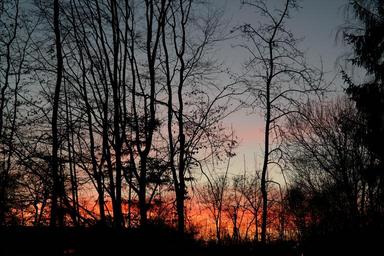 Keywords: trees tree trunks sunset afterglow evening sky clouds sky abendstimmung reddish