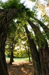 Keywords: trees woods forest nature landscape summer green natural sun park sunlight scenic season scene nobody fisheye