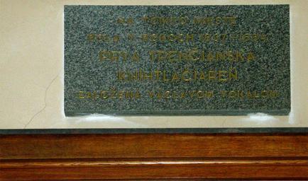 | Keywords: Trencin Mierove-namestie tabula.jpg sk Pamätná tabuľa na trenčiansku tlačiareň own Peter Zelizňák 25 júla 2015 618/2003 Z z ZÁKON zo 4 decembra 2003 o autorskom práve Slovenskej republiky § 27 Použitie diela umiestneného na verejnom priestranstve GFDL cc-by-sa-all FoP-Slovakia Plaques in Trenčín |