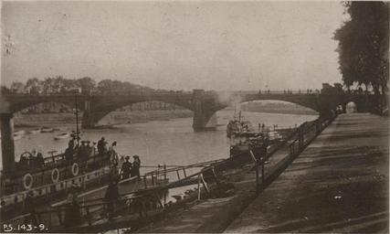 | Keywords: Trent Bridge 206.jpg This scan of an Edwardian photo postcard is of interest for its content It shows Trent Bridge Nottingham England Below the bridge there is a 19th century paddle steamer with old-fashioned tall narrow funnel smoking away In the foreground tourists in Edwardian dress prepare for their penny sick outing on a steam boat The river banks are not yet built up with stone and steps and the passengers have to use gangways laid over the mud banks First upload http //i ebayimg com/images/g/RHAAAOSwVFlUIHlb/s-l1600 jpg Ebay Second upload scan of original postcard in my possession 1900 1914 author Trent Bridge archive images PD-old-70-1923 |