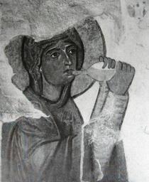 Keywords: Trial of Virgin Mary by Water (Ateni fresco).jpg en The Virgin Mary drinking the bitter water a detail of the scene The Trial by Water an apocryphal Christian story from Mary's life Fresco from Ateni Georgia country ამირა აშვილი შ ქართული ხელ ვ ების ისტ რია -თბ 1971 anonymous century 10 Source ამირა აშვილი შ ქართული ხელ ვ ების ისტ რია -თბ 1971 PD-art-100 Murals in Ateni Sioni Church Frescos in Georgia 10th-century frescos Life of Mary Georgia in the 10th century |