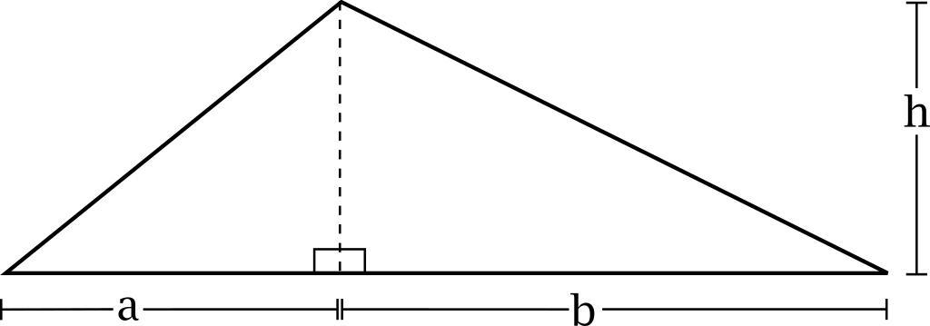 Keywords: Triangle1-area-using-abh.svg en Area of triangle from two right triangles own JamesCrook 2010-12-26 Triangle area Height triangle
