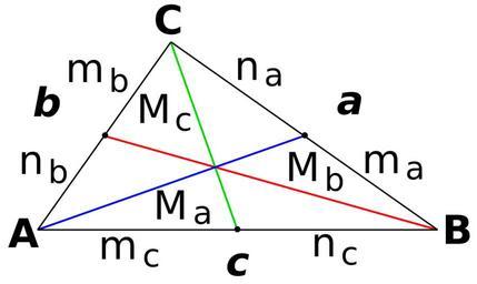| Keywords: Triangle3Medians3ColRGB-01.svg en Triangle with conventional designation and 3 median in color red green blue es Triángulo con designación convencional y las 3 medianas en colores rojo verde azul own Gusbelluwiki 2011-03-23 Cc-zero Euclidean geometry Mathematical theorems |