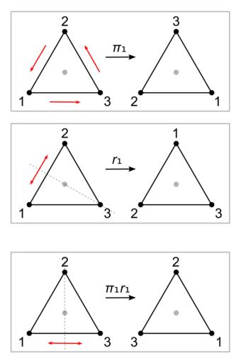 | Keywords: Triangle permutation example Grimaldi.svg Two permutations of a triangle and their product The two drawings on the top are essentially as in the book The result below is an addition for clarity's sake <small> cite book Grimaldi Ralph Discrete and combinatorial mathematics an applied introduction Addison-Wesley Longman Reading Mass 2004 0321211030 <br> Example 16 7 p 749 </small> 2016-11-21 own Watchduck other versions cc-zero Symmetric group S3 Triangles | ||||
