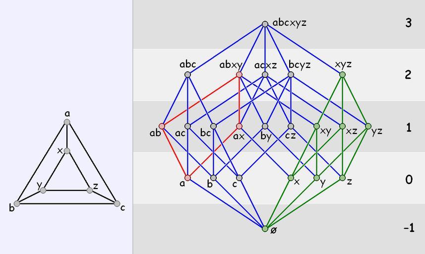 Keywords: Triangular 3-Prism.PNG en The graph and Hasse of a Triangular 3-prism own SteveWoolf 2010-07-11 Hasse diagrams Abstract polytopes Triangular prisms