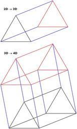 | Keywords: Triangular-prism-3d-4d.png Scheme of formation of triangular parallel prism 2D -> 3D From triangle to 3D triangular prism The resulting solid has 6 vertices 9 edges 5 faces 3D -> 4D From triangualr pyramid to 4D simplex The resulting polytope has 12 vertices 24 edges 19 faces and 7 solids of which 3 rectangular prisms and 4 triangualr prisms Own 2008-10-26 Spiritia Polychora |