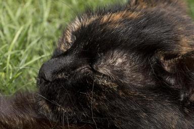 Keywords: tricolor cat cat colored three colors happy cat grass pets domestic cat kitten portrait nature concerns relax cozy nose fluffy fur sleep hair vigilant garden rest be taken care trusting steal claw ecstatic maintained