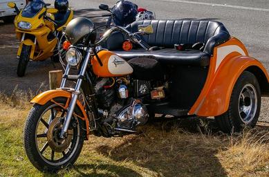 Keywords: tricycle motorbike trike bike motorcycle harley davidson orange three three-wheel