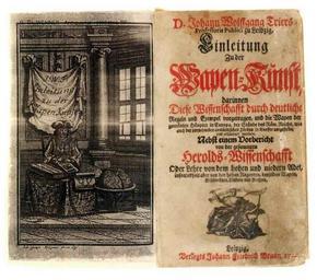 | Keywords: Trier Johann Wolfgang - Einleitung Wapen Kunst Diese Wissenschafft Regeln Exempel Haupter.jpg de Titel-Vignette des Buches Einleitung Zu der Wapen-Kunst darinnen Diese Wissenschafft durch deutliche Regeln und Exempel vorgetragen und die Wapen der gecrönten Häupter Europa der Stände des Röm Reichs wie auch der vornehmsten ausländischen Fürsten in Kupffer vorgestellet und erläutert werden des Leipziger Professors de Johann Wolfgang Trier 1686 - 1750 en Titel of a heraldic-book written by the german heraldist Johann Wolfgang Trier 1686 - 1750 http //www wenner net/ artikelid b34808 searchline trier 20johann 20wolfgang cnt 1 anz 4 pos 0 block 10 author 1714 PD-old-100 Illustrated title pages from Germany Frontispieces from Germany Heraldic books |