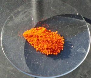 Keywords: Trilead tetraoxide.jpg A sample of trilead tetraoxide Pb<sub>3</sub>O<sub>4</sub> also known as red lead Picture taken August 2005 by User Walkerma Lead oxides Samples of inorganic compounds