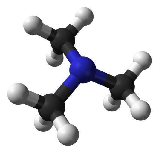 | Keywords: Trimethylamine-3D-balls.png  Ball-and-stick model of the trimethylamine molecule N CH<sub>3</sub> <sub>3</sub> Microwave rotational spectroscopy data from cite journal James E Wollrab and Victor W Laurie 1969 August Structure and Conformation of Trimethylamine J Chem Phys 51 1580-1583 10 1063/1 1672214 Own 2008-05-04 Ben Mills Benjah-bmm27 Images by Ben Mills Trimethylamine |