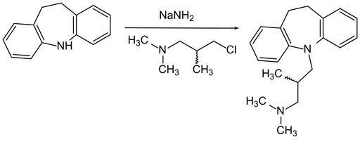 Keywords: Trimipramin synthesis is.svg Synthesis of Trimipramin Own 2010-12-20 Codc <span class signature-talk >talk</span> PD-chem Cc-zero Trimipramine Nucleophilic substitution reactions Drug syntheses