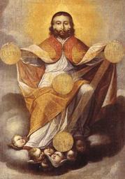 | Keywords: Trinidad.jpg La Coronación de la Virgen por la Trinidad 1697 Santísima Trinidad atribuido a Gregorio Vásquez de Arce y Ceballos Óleo sobre lienzo 62 x 44 cms Holy Trinity by Gregorio Vasquez de Arce y Ceballos Oil in canvas circa 1680 Colombian National Museum A Shield of the Trinity diagram formerly present as in Image Trinity_by_Jeronimo_Cosida jpg has been painted over Note Such 16th-17th century representations of the Christian Trinity as a three-faced head have not been accepted iconography in any major mainstream Christian denomination in recent centuries PD-old-100-1923 Gregorio Vásquez de Arce y Ceballos Three faces on one head Artworks missing infobox template |