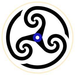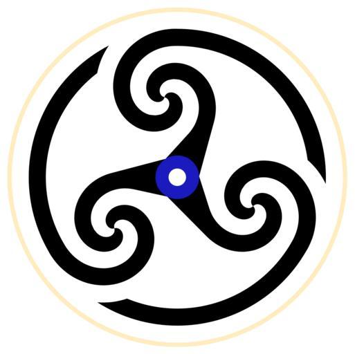 | Keywords: Triple-spiral-wheeled-simple.svg An attempt at a simple form of a wheeled type of Triskelion symbol containing three double spirals connected together by spokes on the inside and which branch out into arcs of a circle partially enclosing the whole figure on the outside Inspired by various Celtic decorative motifs but this version is constructed from mathematical Archimedean spirals For another effort in this direction see Image Wheeled-Triskelion-basic svg also enclosed in partial circle For a more ornate wheeled triskelion see Image Triskelion-spiral-threespoked-inspiral svg enclosed in overall spiral For other non-wheel versions of the triskelion or triple-spiral symbols see Image Triskele-Symbol-spiral-five-thirds-turns svg Image Triple-Spiral-Symbol-filled svg Image Triple-Spiral-Symbol-4turns-filled svg Image Triskele-Symbol-spiral svg or Image Triple-Spiral-Symbol svg For a spiral triskelion with a hollow triangle in the center see Image Triskele-hollow-triangle svg For versions of a triple-spiral labyrinth see Image Triple-Spiral-labyrinth svg and Image Triple-Spiral-labyrinth-variant svg SVG version of Image Triple-spiral-wheeled-simple png Converted from the following PostScript code <pre> /archimdouble PostScript program to display an Archimedean spiral by approximating it with Bezier curves Can display a double spiral two spirals rotated by 180 degrees with respect to each other Parameters centerx horizontal coordinate of center of spiral centery vertical coordinate of center of spiral rotf degrees to rotate /sepwid 110 def width separating successive turnings of spiral half this if double spiral is selected /incrm 15 def insert a curve point after this number of degrees /double 1 def change to 0 to display single spiral /quadruple 1 def change to 0 to display single/double spiral only Procedures /pi 3 1415926535898 def/radians 57 295779513082 def /sepwid sepwid pi div 2 div def gsave centerx centery translate rotf rotate /aspiral /prevbezy 0 def/first 1 def lower incrm sweeps 360 mul 8 dup repeat phase add cos/costh exch def phase add sin/sinth exch def costh mul radians div/thcosth exch def sinth mul radians div/thsinth exch def thcosth sepwid mul/x exch def thsinth sepwid mul/y exch def 0 eq phase 90 eq phase 270 eq or and /slope 999999999 def /slope sinth thcosth add costh thsinth sub div def ifelse sinth 0 gt sinth 0 eq costh -1 eq and or /flag -1 def /flag 1 def ifelse /A exch def phase 90 eq phase 270 eq or not A 49 29348 lt A 180 gt A 196 273450852 lt and A 360 gt A 368 8301 lt and A 540 gt A 545 9907 lt and A 720 gt A 724 5217 lt and A 900 gt A 903 6281968 lt and or or or or or /flag flag neg def if if incrm sub 3 dup repeat phase add cos sepwid mul mul radians div /prevx exch def phase add sin sepwid mul mul radians div /prevy exch def incrm add 3 dup repeat phase add cos sepwid mul mul radians div /nextx exch def phase add sin sepwid mul mul radians div /nexty exch def /prevdist x prevx sub dup mul y prevy sub dup mul add sqrt pi div def /nextdist x nextx sub dup mul y nexty sub dup mul add sqrt pi div def /normaliz slope slope mul 1 add sqrt def 0 eq 0 0 moveto/prevbezx phase cos nextdist mul def/first 0 def first 1 eq x y moveto/first 0 def prevbezx prevbezy x 1 flag mul normaliz div prevdist mul sub y slope flag mul normaliz div prevdist mul sub x y curveto ifelse /prevbezx x 1 flag mul normaliz div nextdist mul add def /prevbezy y slope flag mul normaliz div nextdist mul add def ifelse for stroke x y moveto x 1 flag mul normaliz div nextdist mul pi mul const mul add y slope flag mul normaliz div nextdist mul pi mul const mul add lineto stroke def /sweeps 793 def number of 360 degree turnings to show /const 3 732 def /phase 0 def aspiral double 0 ne /sweeps 0 62534 def /const 2 805 def /phase 90 def aspiral if quadruple 0 ne /const 0 def /sweeps 0 95834 def /phase 180 def aspiral /sweeps 0 75029 def /phase 270 def aspiral if grestore def /extensions /const 0 def/lower 345 def/incrm 12 48 def /sweeps 358 360 div def/phase 180 def gsave centerx centery translate rotf rotate aspiral grestore /lower 270 def/incrm 4 def /sweeps 270 41 360 div def/phase 270 def gsave centerx centery translate rotf rotate aspiral grestore def /curvedge /const 0 def/lower 368 13 def/incrm 11 6 def /sweeps 392 360 div def/phase 90 def gsave centerx centery translate rotf rotate aspiral grestore def gsave 342 -457 translate -1 1 scale 35 955 rotate /lower 0 def/incrm 15 def/disp 135 rotf 23 68 sub def/trnslx disp sin neg mul disp cos mul translate def gsave /centerx 304 def/centery 550 def/rotf 5 67 def trnslx gsave archimdouble grestore extensions curvedge /lower 0 def/incrm 15 def grestore gsave /centerx 634 def/centery 550 def/rotf 125 67 def trnslx gsave archimdouble grestore extensions curvedge /lower 0 def/incrm 15 def grestore gsave /centerx 469 def/centery 835 7884 def/rotf 245 67 def trnslx gsave archimdouble grestore extensions curvedge grestore grestore 341 2207 340 6995 206 87 7 53 90 arc stroke 341 2207 340 6995 233 784 90 -2 575 arcn stroke 341 2207 340 6995 206 87 127 53 210 arc stroke 341 2207 340 6995 233 784 210 117 425 arcn stroke 341 2207 340 6995 206 87 247 53 330 arc stroke 341 2207 340 6995 233 784 330 237 425 arcn stroke 1 1 75 setrgbcolor 341 2207 340 6995 34 375 360 0 arcn fill 1 setgray 341 2207 340 6995 13 75 360 0 arcn fill 1 925 75 setrgbcolor 6 875 setlinewidth 341 2207 340 6995 260 698 360 0 arcn closepath stroke showpage EOF</pre> Triple spiral Images with PostScript source code |