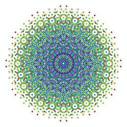 | Keywords: Trirectified 4 21 polytope Coxeter plane.svg en wikipedia 2011 October 16 Gosset 4_21 polytope graph in Coxeter plane vertices colored by multiplicity 8 16 24 32 48 64 80 96 144 192 288 06 43 19 February 2010 UTC I Tom Ruen talk created this work entirely by myself <br />Transferred from http //en wikipedia org en wikipedia Tom Ruen talk en wikipedia Tomruen Original upload log page en wikipedia Trirectified_4_21_polytope_Coxeter_plane svg 2010-02-19 06 43 Tomruen 800×800 151610 bytes <nowiki> Trirectified Gosset 4_21 polytope graph in Coxeter plane vertices colored by multiplicity I ~~~ created this work entirely by myself ~~~~~ ~~~ other_versio</nowiki> 2010-02-19 06 50 Tomruen 800×800 150460 bytes <nowiki>correct</nowiki> 2010-02-19 07 01 Tomruen 800×800 150460 bytes <nowiki> Trirectified Gosset 4_21_polytope graph in coxeter plane vertices only colored by multiplicity red orange yellow green etc 8 16 24 32 48 64 80 96 144 192 288 I ~~~ created this work entire</nowiki> Set of colored Coxeter plane graphs; many vertices |