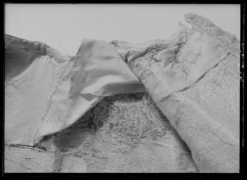 | Keywords: Tröja av mönstrad silverbrokad, ca 1650-1660 - Livrustkammaren - 70202.tif LSH artwork sv Buren av Karl X Gustav 1622-1660 vid kröningen 1654-06-06 okänd tillverkare <br/>Tröja Livplagg av innocenttyp Skuren i 2 lika stora framstycken vars framkanter följer staden 1 helt bakstycke 1 ståndkrage 10 små skört samt 2 svängda stycken för varje ärm Plagget är sytt av rik silverbrokad och har även foder av silverbrokad i annat mönster Tröjan är försedd med mellanfoder av linnelärft 20x19 tr/cm2 och planschetter triangelformade styvnader nedtill i de spetsiga framkanterna Kragen är på insidan fodrad med vitt mönstrat siden av samma sort som återkommer i tröjan till dräkt nr 3401 och har mellanfoder av linnelärft 25x21 tr/cm2 med inlagd styvnad troligen fiskben Vänsterframstycke har 21 knapphål för de bevarade 21 knapparna i höger framstycke Knapphålen är sydda med vitt högertvinnat silke 8 stygn/cm över 1 tråd Knapparna d 1 3 cm är med silverlansomspunnet vitt högertvinnat silke trind kantilj och silverlan Tre stycken likadana knappar sitter i kragen men motsvarande tränsar saknas <br/>Silverbrokaden som utgör tröjans övertyg benämnes rik silverduk Den kan beskrivas på följande sätt Vådbredd minst 50 cm 72x18 tr/cm2 Varp av tunt vitt otvinnat silke De grövre otvinnade vita inslagstrådarna bildar dels botten med silverlan i varje inslag dels blommönster av flotterade trådar med högertvinnade silverlan i varje sådant inslag Stad 1 cm 10 gröna 4 orange 12 gröna 1 vit tråd Mönsterrapport 8 8 x 8 8 cm Mönstret är symmetriskt uppbyggt med halvnaturalistiska blommor sammanhållna i rosettlika arrangemang Ärmarna är avsedda att ha den främre sömmen öppen På de motsatta bakre sömmarna har ärmarna sprund nedtill vid handleden Man har avsett att vika upp ärmensnederkant till uppslag Förutom de 10 trapetsformade skörten sitta i midjan på tröjansinsida 7 st stroppar klädda med foderbrokaden vardera med 2 hål för de 7 silverhakarna ibyxlinningen 4 sitter på den vänstra sidan och 3 på den högra Silverbrokaden som utgörtröjans foder benämnes också i de äldre inventarierna silverduk <br/>Denna har en vådbredd av minst 51 cm c a 70 x 18 á 19 tr/cm2 Mycket tunn och tät varp avvita otvinnade silkestrådar där dessa bildar botteninslag ha de försetts med silverlan pårätan De flotterande mönstertrådarna är däremot endast av vitt silke Ripsvävnad Stad 0 8 cm 12 gröna 4 gulorange 10 gröna 1 tjockare vit tråd - vävnad i tuskaft Mönsterrapport h 7 7 cm b 6 6 cm Det är ett halvnaturalistiskt blomstermönster med enkarakteristisk figur som erinrar om en fjäder Samma silverbrokad återkommer som foder itröjan nr 3389 All garnering och dekor av spetsar har sprättats bort och tröjans foder harskadats upptill Kragen har även brännskada vilket tyder på att den lämnats till utbrännning På kragens insida har man med bläck märkt plagget N 43 en åtgärd somstammar från 1789 original caption Karl X Gustavs kröning < 1654 brocade d1 - dräkt - yttermaterial material silverbrokad - linen - silk Färg vit material siden - silk Färg vit material silke - silver - silver - brocade d1 - dräkt - yttermaterial material silverbrokad LRK Karl X Gustav av Sverige Gallica 1945 Sweden - A Royal Treasury 1988-1989 Slottet brinner 1997 1648 Westfaliska freden 1998 Modelejon 2002 Les arts décoratifs sous Louis XIII 2002 Sweden and Europe 1632-1792 2003-2004 Silver - Makt o prakt i barockens Sverige 2003-2004 place of origin original filename LN_B14288_017168 67897 inventory number LRK 31304 70202 CC0 Tröja av mönstrad silverbrokad ca 1650-1660 - Livrustkammaren - 70202-negative tif <gallery caption Different images of same object > File Tröja av mönstrad silverbrokad ca 1650-1660 - Livrustkammaren - 18866 tif File Tröja av mönstrad silverbrokad ca 1650-1660 - Livrustkammaren - 10303 tif File Dräkt i rött och silvertyg som tillhört Karl X Gustav - Livrustkammaren - 65159 tif File Tröja av mönstrad silverbrokad ca 1650-1660 - Livrustkammaren - 70230 tif File Tröja av mönstrad silverbrokad ca 1650-1660 - Livrustkammaren - 78761 tif File Tröja av mönstrad silverbrokad ca 1650-1660 - Livrustkammaren - 53091 tif File Tröja av mönstrad silverbrokad ca 1650-1660 - Livrustkammaren - 61640 tif File Tröja av mönstrad silverbrokad ca 1650-1660 - Livrustkammaren - 35972 tif File Tröja av mönstrad silverbrokad ca 1650-1660 - Livrustkammaren - 78789 tif File Dräkt i rött och silvertyg som tillhört Karl X Gustav - Livrustkammaren - 73721 tif File Tröja av mönstrad silverbrokad ca 1650-1660 - Livrustkammaren - 10304 tif File Dräkt i rött och silvertyg som tillhört Karl X Gustav - Livrustkammaren - 56598 tif File Tröja av mönstrad silverbrokad ca 1650-1660 - Livrustkammaren - 1744 tif File Tröja av mönstrad silverbrokad ca 1650-1660 - Livrustkammaren - 44530 tif </gallery> Coronation of Charles X of Sweden Shirts Media contributed by LSH 2014-11 |