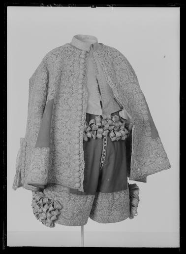 | Keywords: Tröja av mönstrad silverbrokad, ca 1650-1660 - Livrustkammaren - 78789.tif LSH artwork sv Buren av Karl X Gustav 1622-1660 vid kröningen 1654-06-06 okänd tillverkare <br/>Tröja Livplagg av innocenttyp Skuren i 2 lika stora framstycken vars framkanter följer staden 1 helt bakstycke 1 ståndkrage 10 små skört samt 2 svängda stycken för varje ärm Plagget är sytt av rik silverbrokad och har även foder av silverbrokad i annat mönster Tröjan är försedd med mellanfoder av linnelärft 20x19 tr/cm2 och planschetter triangelformade styvnader nedtill i de spetsiga framkanterna Kragen är på insidan fodrad med vitt mönstrat siden av samma sort som återkommer i tröjan till dräkt nr 3401 och har mellanfoder av linnelärft 25x21 tr/cm2 med inlagd styvnad troligen fiskben Vänsterframstycke har 21 knapphål för de bevarade 21 knapparna i höger framstycke Knapphålen är sydda med vitt högertvinnat silke 8 stygn/cm över 1 tråd Knapparna d 1 3 cm är med silverlansomspunnet vitt högertvinnat silke trind kantilj och silverlan Tre stycken likadana knappar sitter i kragen men motsvarande tränsar saknas <br/>Silverbrokaden som utgör tröjans övertyg benämnes rik silverduk Den kan beskrivas på följande sätt Vådbredd minst 50 cm 72x18 tr/cm2 Varp av tunt vitt otvinnat silke De grövre otvinnade vita inslagstrådarna bildar dels botten med silverlan i varje inslag dels blommönster av flotterade trådar med högertvinnade silverlan i varje sådant inslag Stad 1 cm 10 gröna 4 orange 12 gröna 1 vit tråd Mönsterrapport 8 8 x 8 8 cm Mönstret är symmetriskt uppbyggt med halvnaturalistiska blommor sammanhållna i rosettlika arrangemang Ärmarna är avsedda att ha den främre sömmen öppen På de motsatta bakre sömmarna har ärmarna sprund nedtill vid handleden Man har avsett att vika upp ärmensnederkant till uppslag Förutom de 10 trapetsformade skörten sitta i midjan på tröjansinsida 7 st stroppar klädda med foderbrokaden vardera med 2 hål för de 7 silverhakarna ibyxlinningen 4 sitter på den vänstra sidan och 3 på den högra Silverbrokaden som utgörtröjans foder benämnes också i de äldre inventarierna silverduk <br/>Denna har en vådbredd av minst 51 cm c a 70 x 18 á 19 tr/cm2 Mycket tunn och tät varp avvita otvinnade silkestrådar där dessa bildar botteninslag ha de försetts med silverlan pårätan De flotterande mönstertrådarna är däremot endast av vitt silke Ripsvävnad Stad 0 8 cm 12 gröna 4 gulorange 10 gröna 1 tjockare vit tråd - vävnad i tuskaft Mönsterrapport h 7 7 cm b 6 6 cm Det är ett halvnaturalistiskt blomstermönster med enkarakteristisk figur som erinrar om en fjäder Samma silverbrokad återkommer som foder itröjan nr 3389 All garnering och dekor av spetsar har sprättats bort och tröjans foder harskadats upptill Kragen har även brännskada vilket tyder på att den lämnats till utbrännning På kragens insida har man med bläck märkt plagget N 43 en åtgärd somstammar från 1789 original caption Karl X Gustavs kröning < 1654 brocade d1 - dräkt - yttermaterial material silverbrokad - linen - silk Färg vit material siden - silk Färg vit material silke - silver - silver - brocade d1 - dräkt - yttermaterial material silverbrokad LRK Karl X Gustav av Sverige Gallica 1945 Sweden - A Royal Treasury 1988-1989 Slottet brinner 1997 1648 Westfaliska freden 1998 Modelejon 2002 Les arts décoratifs sous Louis XIII 2002 Sweden and Europe 1632-1792 2003-2004 Silver - Makt o prakt i barockens Sverige 2003-2004 place of origin original filename LN_B14569_017449 67897 inventory number LRK 31304 78789 CC0 Tröja av mönstrad silverbrokad ca 1650-1660 - Livrustkammaren - 78789-negative tif <gallery caption Different images of same object > File Tröja av mönstrad silverbrokad ca 1650-1660 - Livrustkammaren - 18866 tif File Tröja av mönstrad silverbrokad ca 1650-1660 - Livrustkammaren - 10303 tif File Dräkt i rött och silvertyg som tillhört Karl X Gustav - Livrustkammaren - 65159 tif File Tröja av mönstrad silverbrokad ca 1650-1660 - Livrustkammaren - 70230 tif File Tröja av mönstrad silverbrokad ca 1650-1660 - Livrustkammaren - 78761 tif File Tröja av mönstrad silverbrokad ca 1650-1660 - Livrustkammaren - 53091 tif File Tröja av mönstrad silverbrokad ca 1650-1660 - Livrustkammaren - 61640 tif File Tröja av mönstrad silverbrokad ca 1650-1660 - Livrustkammaren - 35972 tif File Dräkt i rött och silvertyg som tillhört Karl X Gustav - Livrustkammaren - 73721 tif File Tröja av mönstrad silverbrokad ca 1650-1660 - Livrustkammaren - 70202 tif File Tröja av mönstrad silverbrokad ca 1650-1660 - Livrustkammaren - 10304 tif File Dräkt i rött och silvertyg som tillhört Karl X Gustav - Livrustkammaren - 56598 tif File Tröja av mönstrad silverbrokad ca 1650-1660 - Livrustkammaren - 1744 tif File Tröja av mönstrad silverbrokad ca 1650-1660 - Livrustkammaren - 44530 tif </gallery> Coronation of Charles X of Sweden Shirts Media contributed by LSH 2014-11 |