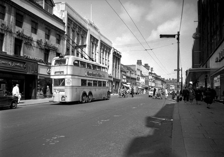 Keywords: newcastle upon tyne newcastleupontyne 1960s northumberland street northumberlandstreet shopping trolley buses trolleybuses c&a clothes store caclothesstore marks & spencer marksspencer psv circle psvcircle nbb628 nbb627 double decker bus doubledeckerbus black white photograph black and white photograph blackandwhitephotograph street road gutter pavement vehicle car wheels door puddle water telegraph pole telegraphpole light wire sky cloud signage letters buildings roof wall glass window shop front shopfront displays mannequin business from 1948 from1948 aerial view aerialview landscape newcastle turners ltd turnersltd 1961 products services premises street view streetview glimpse north east of england northeastofengland cable rod woman man dress shoes hat trousers coat bag chimney brick timber wood row pattern social heritage socialheritage industry surreal everyday life everydaylife newcastle corporation newcastlecorporation metal blackandwhite monochrome architecture outdoor building sidewalk black and white View of Northumberland Street, Newcastle upon Tyne, May 1961 (TWAM ref. DT.TUR/26647K). You can also see an aerial view of Northumberland Street dating from 1948 here www.flickr.com/photos/twm_news/15345407391/. Tyne & Wear Archives presents a series of images taken by the Newcastle-based photographers Turners Ltd. The firm had an excellent reputation and was regularly commissioned by local businesses to take photographs of their products and their premises. Turners also sometimes took aerial and street views on their own account and many of those images have survived, giving us a fascinating glimpse of life in the North East of England in the second half of the Twentieth Century. (Copyright) We're happy for you to share these digital images within the spirit of The Commons. Please cite 'Tyne & Wear Archives & Museums' when reusing. Certain restrictions on high quality reproductions and commercial use of the original physical version apply though; if you're unsure please email archives@twmuseums.org.uk View of Northumberland Street, Newcastle upon Tyne, May 1961 (TWAM ref. DT.TUR/26647K). You can also see an aerial view of Northumberland Street dating from 1948 here www.flickr.com/photos/twm_news/15345407391/. Tyne & Wear Archives presents a series of images taken by the Newcastle-based photographers Turners Ltd. The firm had an excellent reputation and was regularly commissioned by local businesses to take photographs of their products and their premises. Turners also sometimes took aerial and street views on their own account and many of those images have survived, giving us a fascinating glimpse of life in the North East of England in the second half of the Twentieth Century. (Copyright) We're happy for you to share these digital images within the spirit of The Commons. Please cite 'Tyne & Wear Archives & Museums' when reusing. Certain restrictions on high quality reproductions and commercial use of the original physical version apply though; if you're unsure please email archives@twmuseums.org.uk