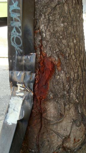 | Keywords: Tronco de caobo.jpg en Mahogany trunk es Tronco de caobo chocado por un camión Puede verse el color rojo intenso de la madera casi negro por debajo de la corteza Caracas Venezuela own Fev 2009-10-04 Dominio público La foto fue tomada unos 15 días después de que el tronco de un caobo fuera impactado por un pequeño camión Este árbol ya fue impactado por varios vehículos varios años atrás y pueden verse las huellas de los distintos choques lo que indica la resistencia de la madera Swietenia macrophylla |