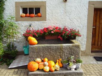 Keywords: trough floral decorations pumpkins farmhouse autumn halloween