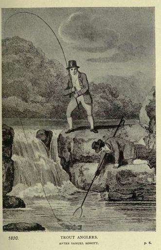Keywords: TroutAnglerscirca1820.JPG Trout Anglers circa 1820 from Fishing and Shooting-Buxton 1902 Extracted from PDF version of above work on the Internet Archive 2008-03 Mike Cline PD-old Fly fishing in art Trout angling Trouts in art