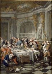 | Keywords: Troy, Jean-François de - Die Austernmahlzeit - 1734.jpg Artwork Creator Jean-François de Troy Die Austernmahlzeit Le Déjeuner d'huîtres 1735 Oil on canvas cm 180 126 Institution Musée Condé Grande galerie 00000076651 Harry Brejat / RMN PE 366 Other versions <gallery>De Troy Oyster Lunch PNG</gallery> PD-old-100 Jean-François de Troy 1734 Austernmahlzeit 18th-century paintings in the Musée Condé French paintings in the Musée Condé 1735 oil on canvas paintings in France 1735 paintings from France Paintings of banquets Checkered floors Eating in paintings Group paintings France in the 1730s Oil paintings of people Oysters in art Paintings of baskets People in rooms in art Rococo paintings in France Uploads by Mattes from external sources Black and white floors |