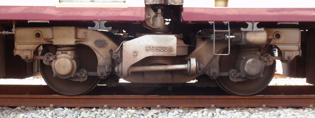 Keywords: Truck-FS533A.jpg en Jacobs bogie truck FS533A of Odakyu Electric Railway Company EMU Type 10000 Odakyu 10000 series HiSE Bogie trucks by Sumitomo Metal Industries Bogie trucks of Odakyu Electric Railway Watt's linkage