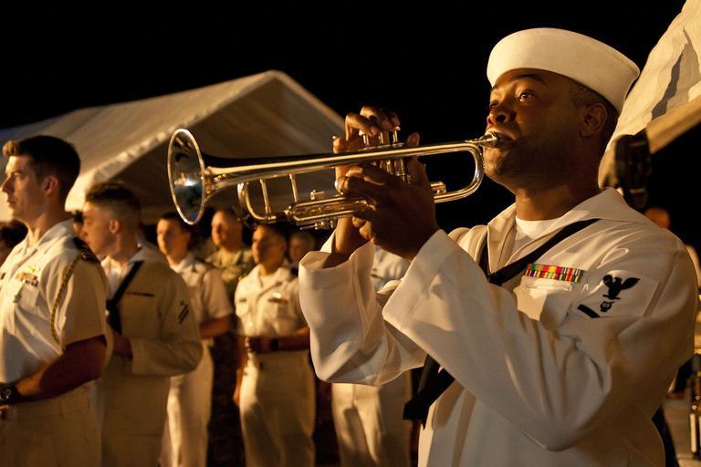 Keywords: trumpeter playing performance music trumpet instrument navy man male portrait blow brass musician