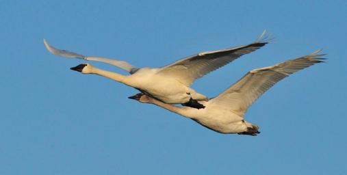 Keywords: trumpeter swans flying birds wildlife nature pair flight cygnus wings graceful white waterfowl