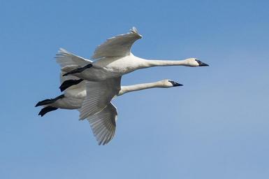 Keywords: trumpeter swans flying birds wildlife nature pair flight cygnus wings graceful white waterfowl