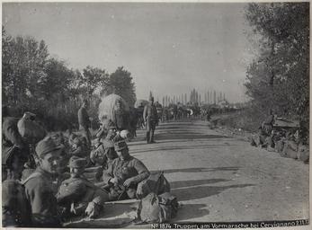 | Keywords: Truppen am Vormarsche bei Cervignano 2.11.17. (BildID 15609545).jpg depicted place austria de K u k Kriegspressequartier Lichtbildstelle - Wien credit line Österreichische Nationalbibliothek - Austrian National Library http //www bildarchivaustria at/Preview/15609545 jpg<br>Catalog http //www bildarchivaustria at/Pages/ImageDetail aspx p_iBildID 15609545 accession number WK1/ALB075/21946 http //creativecommons org/publicdomain/mark/1 0/ el Α΄ Παγκόσμιος Πόλεμος en World War I zh 第 次世界大战 ca Primera Guerra Mundial it Prima guerra mondiale cs První světová válka cy Y Rhyfel Byd Cyntaf hy Առաջին համաշխա հային պատե ազմ ga An Chéad Chogadh Domhanda eu Lehen Mundu Gerra et Esimene maailmasõda gl Primeira Guerra Mundial es Primera Guerra Mundial ru Пе вая ми овая война az Birinci dünya müharibəsi pt Primeira Guerra Mundial no Første verdenskrig tr I Dünya Savaşı lv Pirmais pasaules karš lt Pirmasis pasaulinis karas ro Primul Război Mondial ar الحرب العالمية الأولى is Fyrri heimsstyrjöldin pl I wojna światowa yi ערשטע ווע ט מ חמה be Пе шая сусветная вайна fr Première Guerre mondiale bg Пъ ва световна война hr Prvi svjetski rat de Erster Weltkrieg hu Első világháború hi प्रथम विश्वयुद्ध bs Prvi svjetski rat fi Ensimmäinen maailmansota da 1 verdenskrig ja 第 次世界大戦 he מ חמת העו הראשונה ka პირველი მს ფლი მი sr П ви светски ат sq Lufta e Parë Botërore ko 1차 세계 전 sv Första världskriget mk П ва светска војна sk Prvá svetová vojna gd An Cogadh Mòr uk Пе ша світова війна sl Prva svetovna vojna PD-old-80-1923 Kriegspressequartier Alben 1914 - 1918 Images uploaded by Fæ Cervignano del Friuli Photographs taken on 1917-11-02 |
