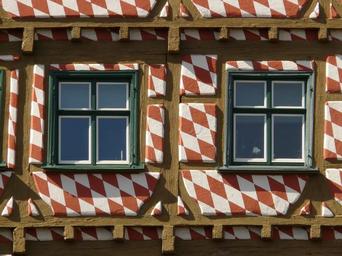 Keywords: truss fachwerkhaus bar entablature home facade window checkered red white red white architecture colorful color