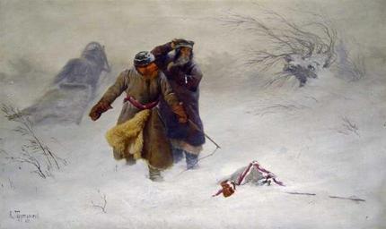| Keywords: Trutovsky Missing.jpg Konstantin Trutovsky 1826 1893 Missing in action in the snowstorm Oil on canvas 1887 Konstantin Trutowski 1826 Kursk - Moskau 1893 Im Schneesturm vermisst Пу га Холст масло 1887 PD-Art Source http //www nusser-auktionen de/html/k-gemaelde htm Battles in art Snow storms Sheepskin clothing Winter in Russian art Konstantin Trutovsky Blizzards in art Artworks missing infobox template | ||||