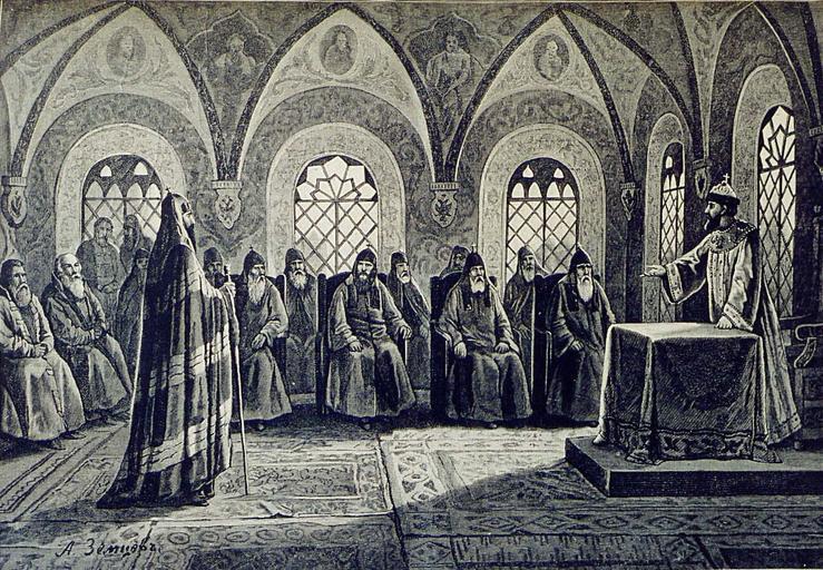 Keywords: Tsar Alexey Mihajlovich and patriarch Nikon on court.jpg Tsar Alexey Mihajlovich and patriarch Nikon on court Ца ь Алексей ихайлович и пат иа х икон на суде http //www hist msu ru/ER/NIKON/IZGr19_2 htm 1892 A Zemtcov PD-Russia-2008 Patriarch Nikon in history paintings Alexis I of Russia in history paintings |